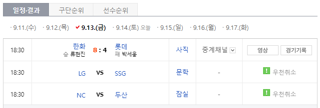 9/13 한화 vs 롯데 하이라이트 바로가기