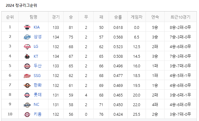 | 기아 타이거즈 정규시즌 우승까지 매직넘버 5 (9월12일 프로야구 하이라이트 바로보기) (0) | 2024.09.13 |